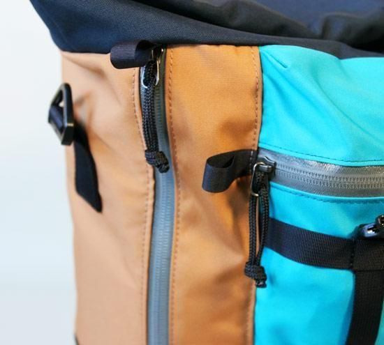 前後に大型ポケット付き、ファスナーはYKKの止水ファスナーを使います。